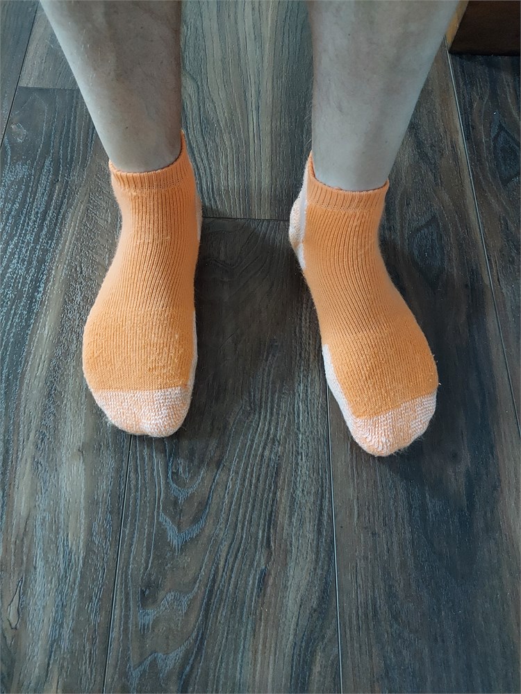 Used Thorlos orange work socks. Worn with my orange jock to be safety compliant. (2 for $40)