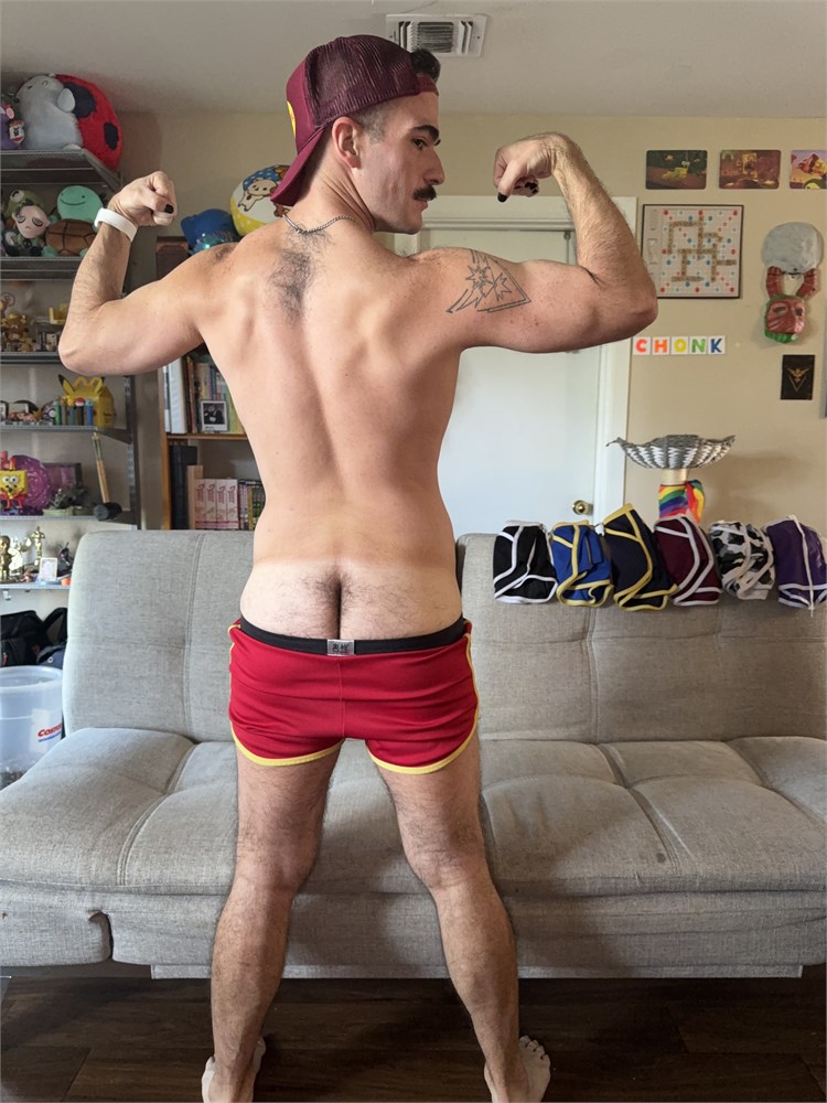 Worn out workout shorts with dick and ball pouch. Will ship with load upon purchase.