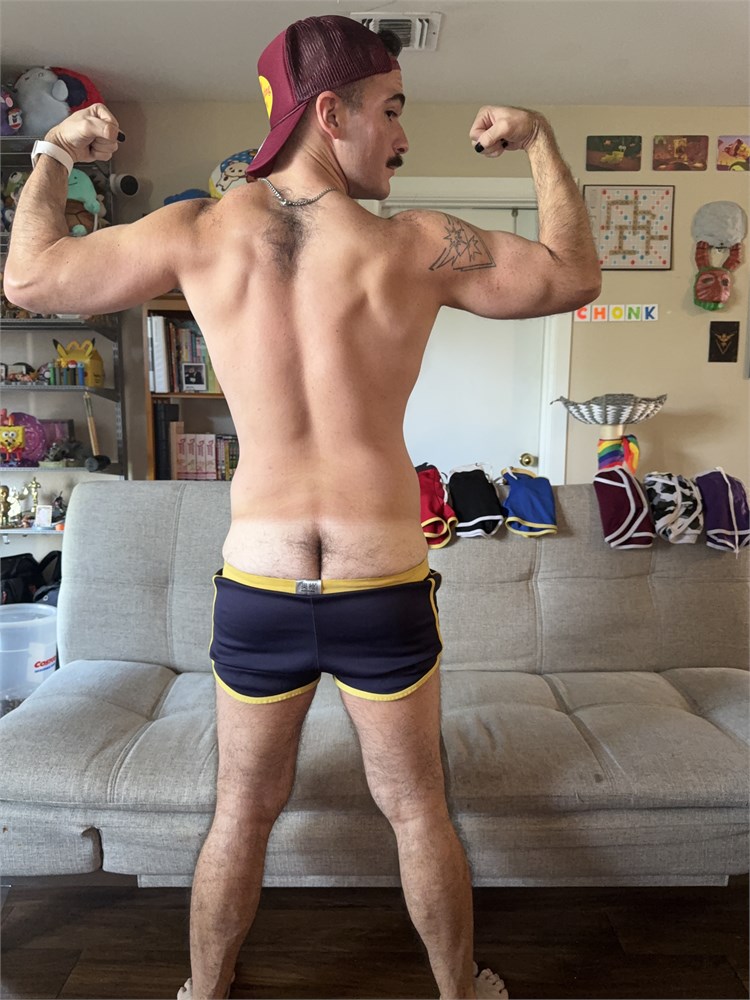 Worn out workout shorts with dick and ball pouch. Will ship with load upon purchase.