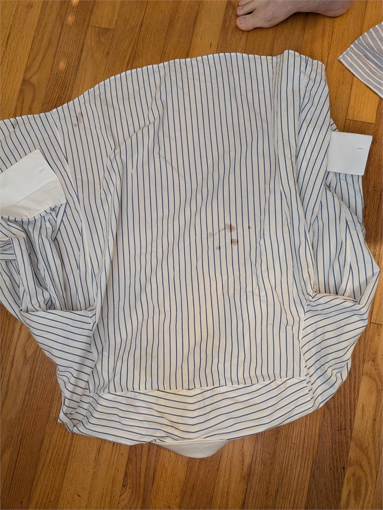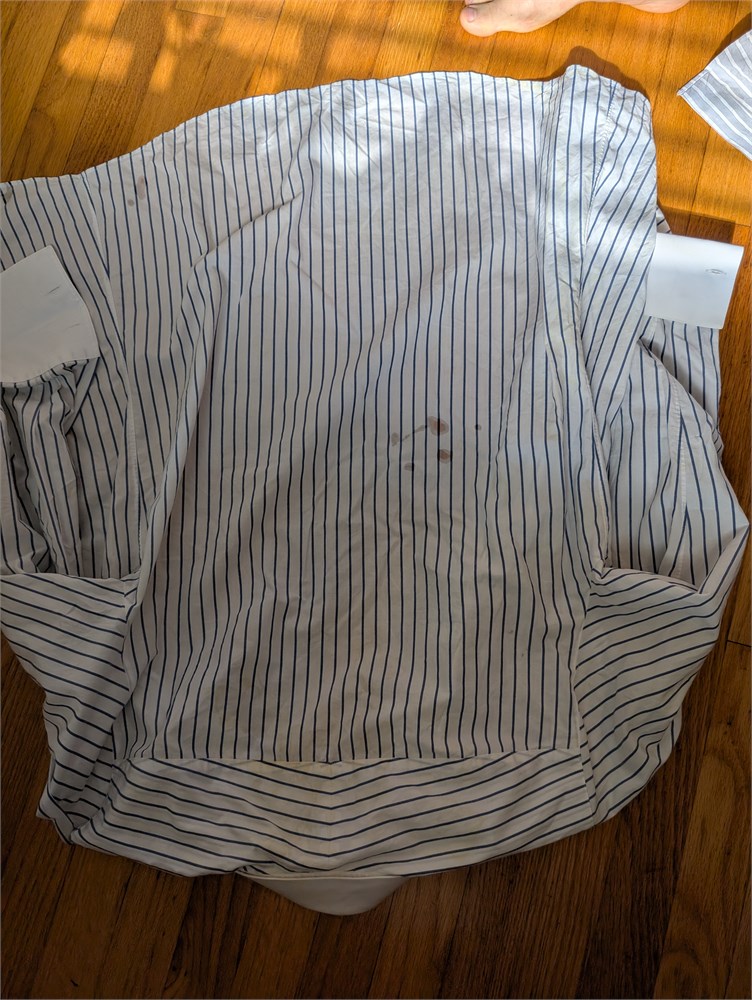 Measurements. Neck: 15.5 inches. Chest: 38 inches. Shoulder: 18 inches. Front shoulder: 17 inches. Sleeve: 22.5 inches. Bicep: 14 inches. Wrists: 7.5 inches. Stomach: 37 inches. Nape to Waist: 18 inches. Back Waist Height: 4.5 inches. Front Waist Length: 19 inches. Front Waist Height: 5 inches.