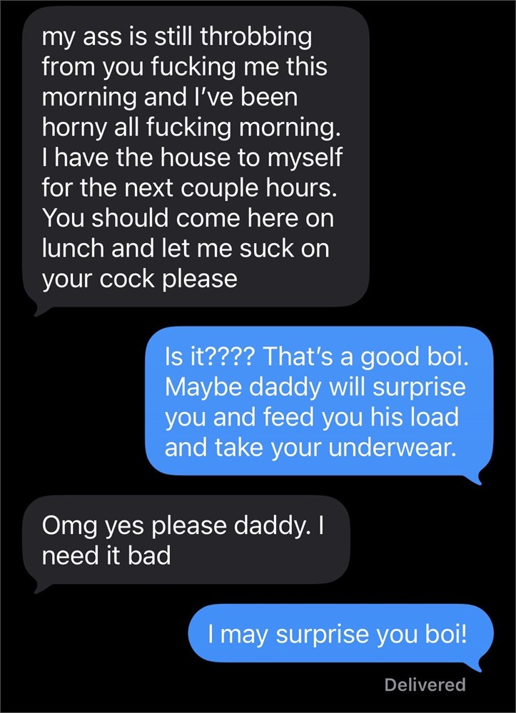 He couldn’t get enough from this morning. He was home alone again and sent me a text, still wanting more.